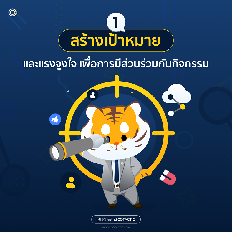 เป้าหมาย คือสิ่งที่ผู้ร่วมกิจกรรมคาดหวังให้ตัวเองมีชัยชนะ หรือ เป็นอันดับหนึ่งของการร่วมกิจกรรม เพื่อของรางวัลที่เป็นของตอบแทน เป็นการสร้างแรงจูงใจสำคัญที่ทำให้มีผู้เข้าร่วมกิจกรรม